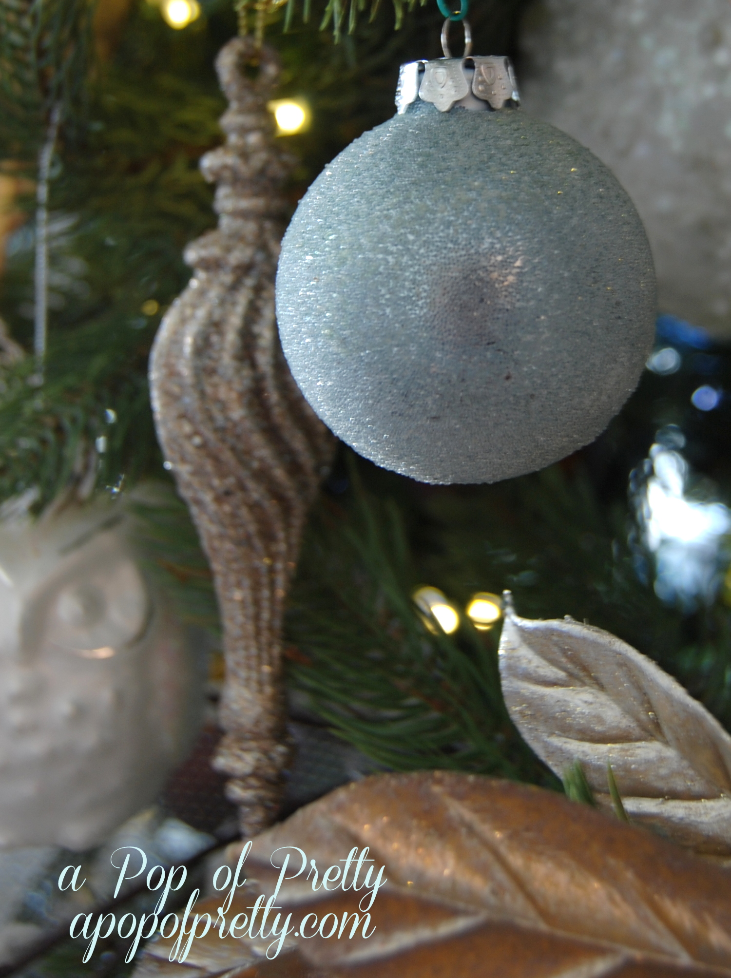 If you caught that post, you might remember that this is the first year I’ve decorated a completely neutral tree. I wasn’t sure how I felt about it, and I was toying with adding a little pop of blue. (When it comes to blue, I have no self-control.) So, after living with the neutral tree for a few days …drumroll… I decided to add a few muted blue ornaments. Sorry to all you neutral lovers out there: I think I broke the cardinal rule of “neutral”!