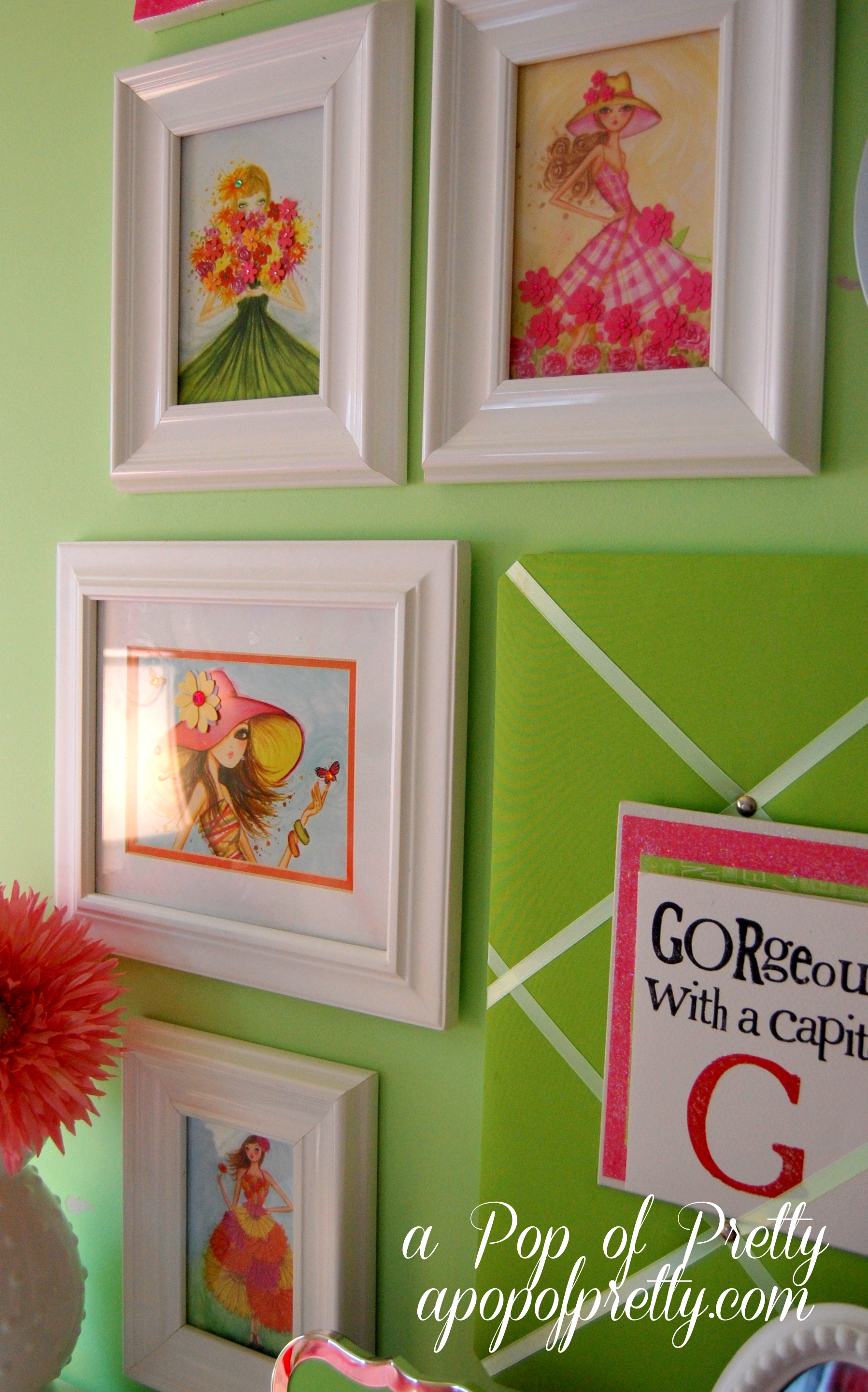 Today’s idea is the third in this series, and is one of my all-time favorites. Can you guess what I used to create this art collection in my 8-year old daughter’s room?