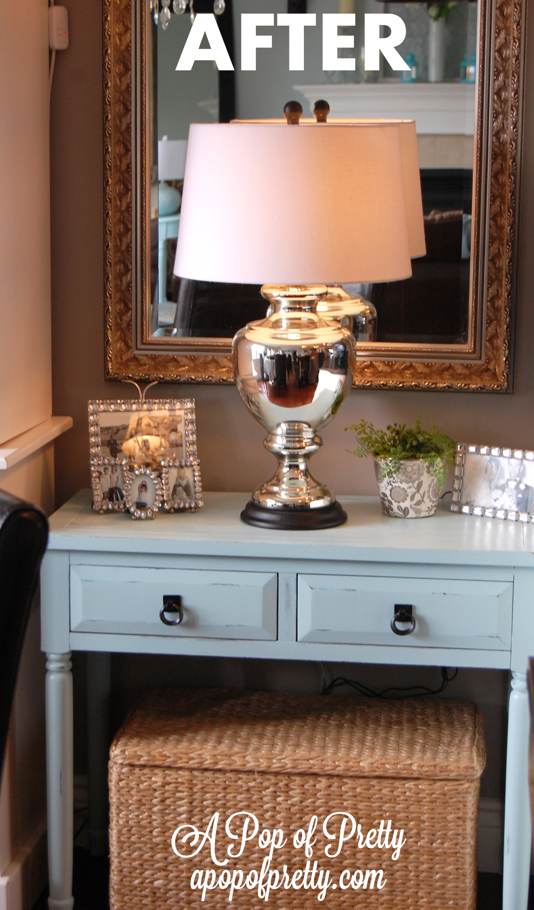 Just stumbled over via Pinterest (of course). Love the new color of the console table.