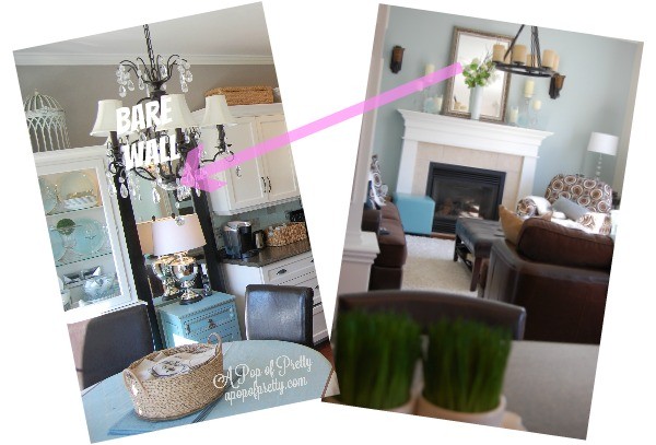 Well, I got to thinking the other day, that the tall leaning mirror between my kitchen and dining area really would look nice in a bare corner of my living room. It was another one of my “Let me just try that quicklys”. So before ya know it, I’m dragging that big honkin heavy mirror over to the living room.