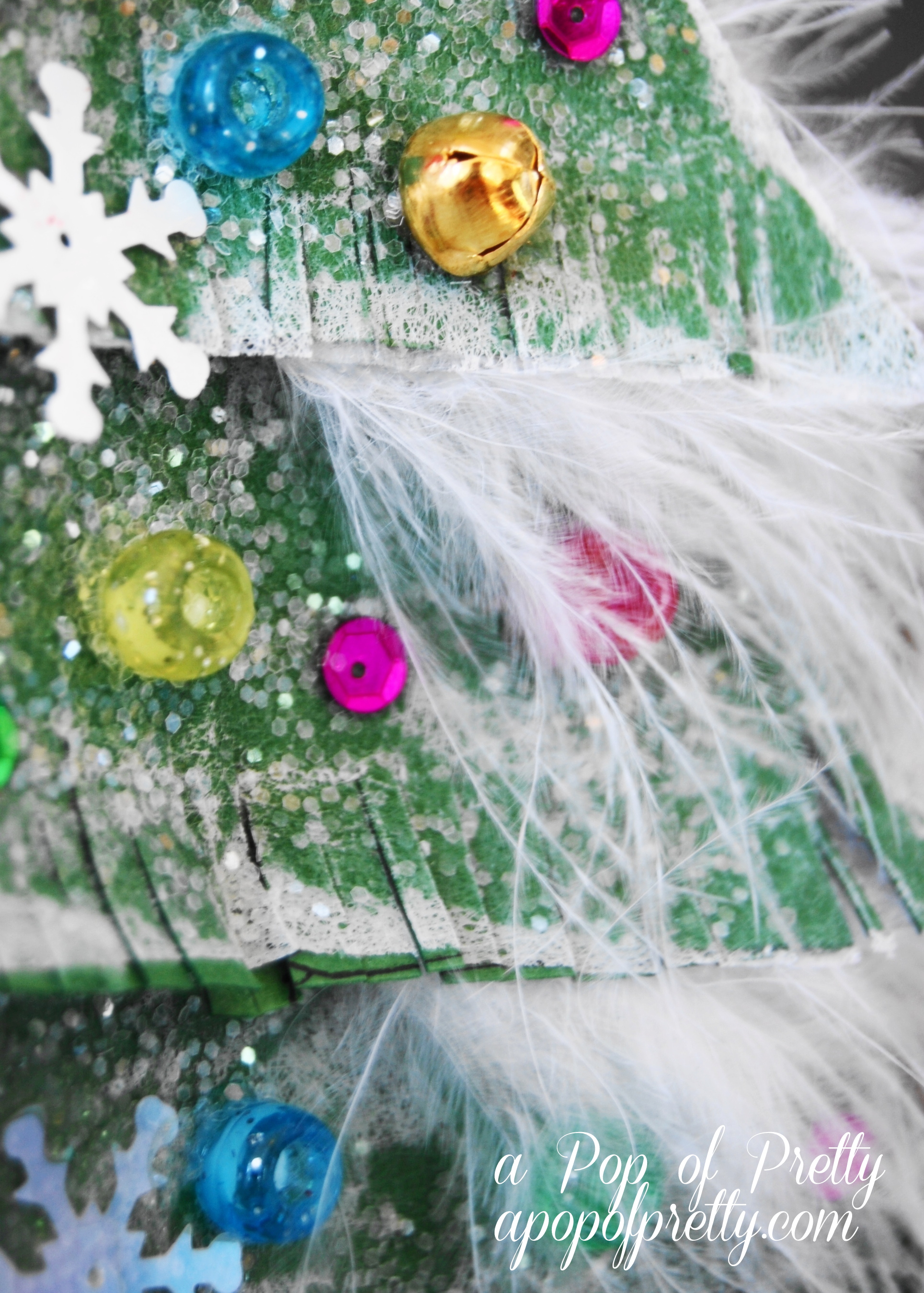 STEP 5: Embellish it! Now it’s time to decorate your tree! Lay your tree flat, and using Weldbond, adhere pretty embellishments of your choice – like beads, sequins, gems and even mini bells! Set aside to dry.