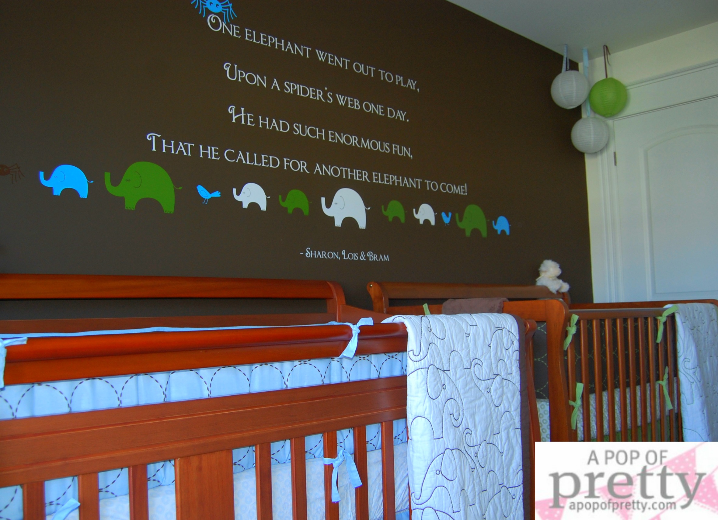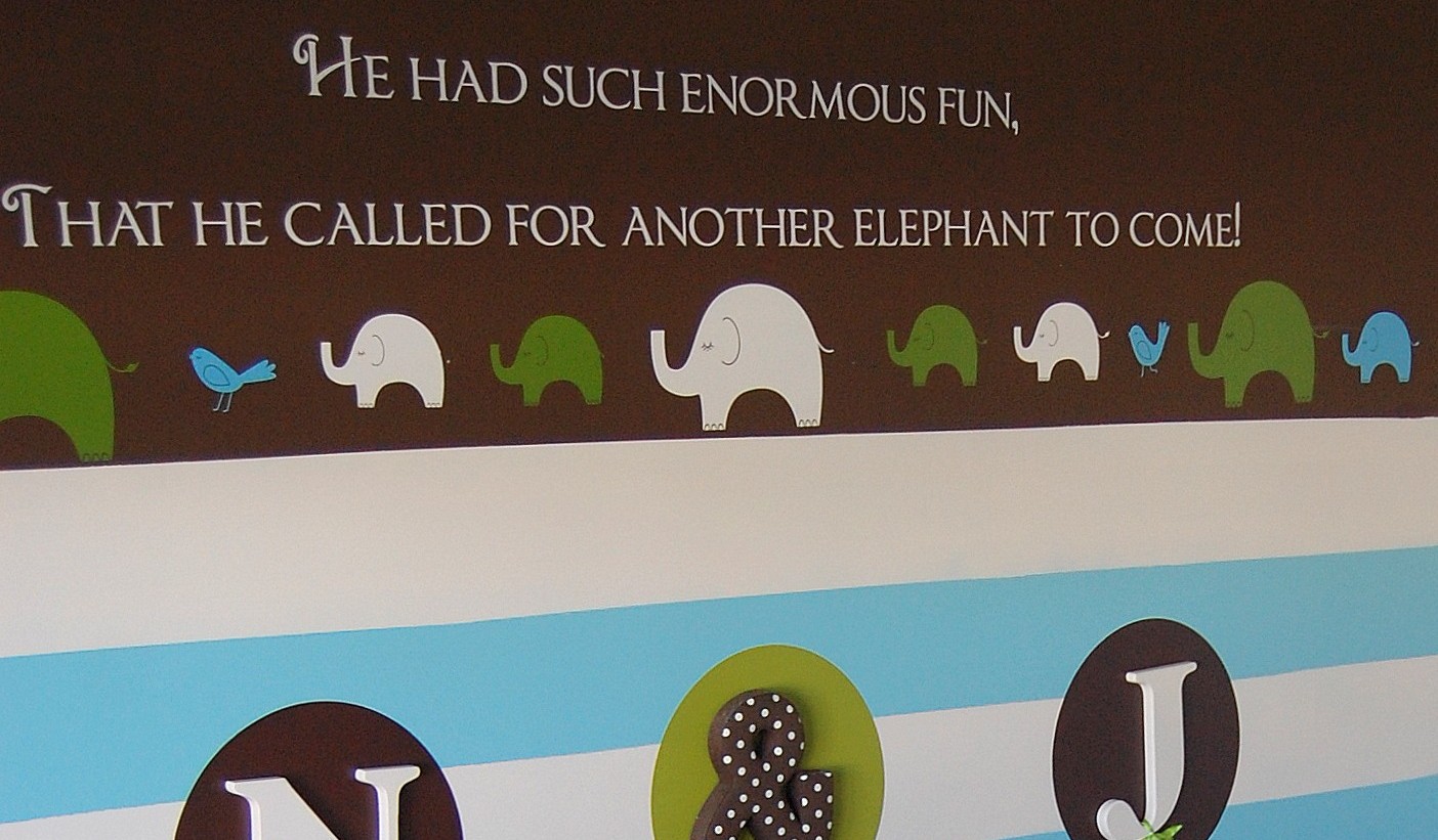 One of these days when they’re 13, I’ll remind them about the silly quote on their wall back when they were babies, and I’ll force them to watch that goofy ‘Elephant Show’ video clip from when Mommy was a kid in the ancient ’80s.