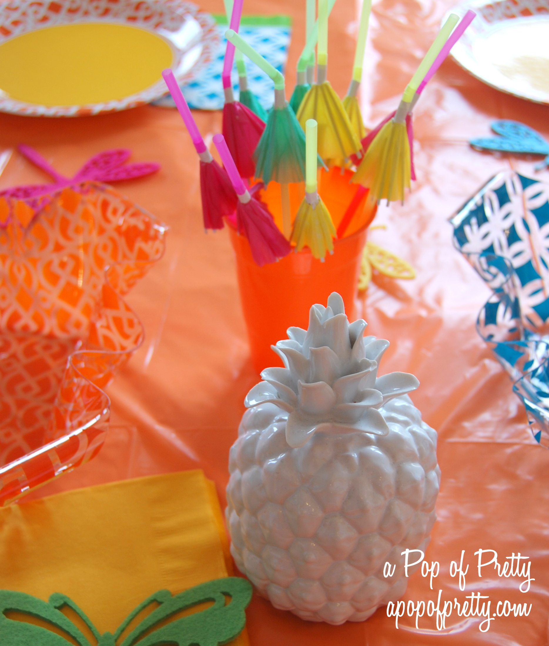 Well, if you need a little pop of whimsy to keep your summer mood in check, you might like this project. It’s so simple and inexpensive, yet adds such punch of happiness. It’s a great decoration for a summer patio party, and one that you can continue to use any time of year for special occasions.