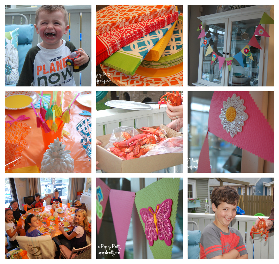 Tonight I wanted to give you a peek at a pretty paper pennant garland that I made as a summer decoration for a little get-together we had at our home that involved copious amounts of lobster (mmmmm).