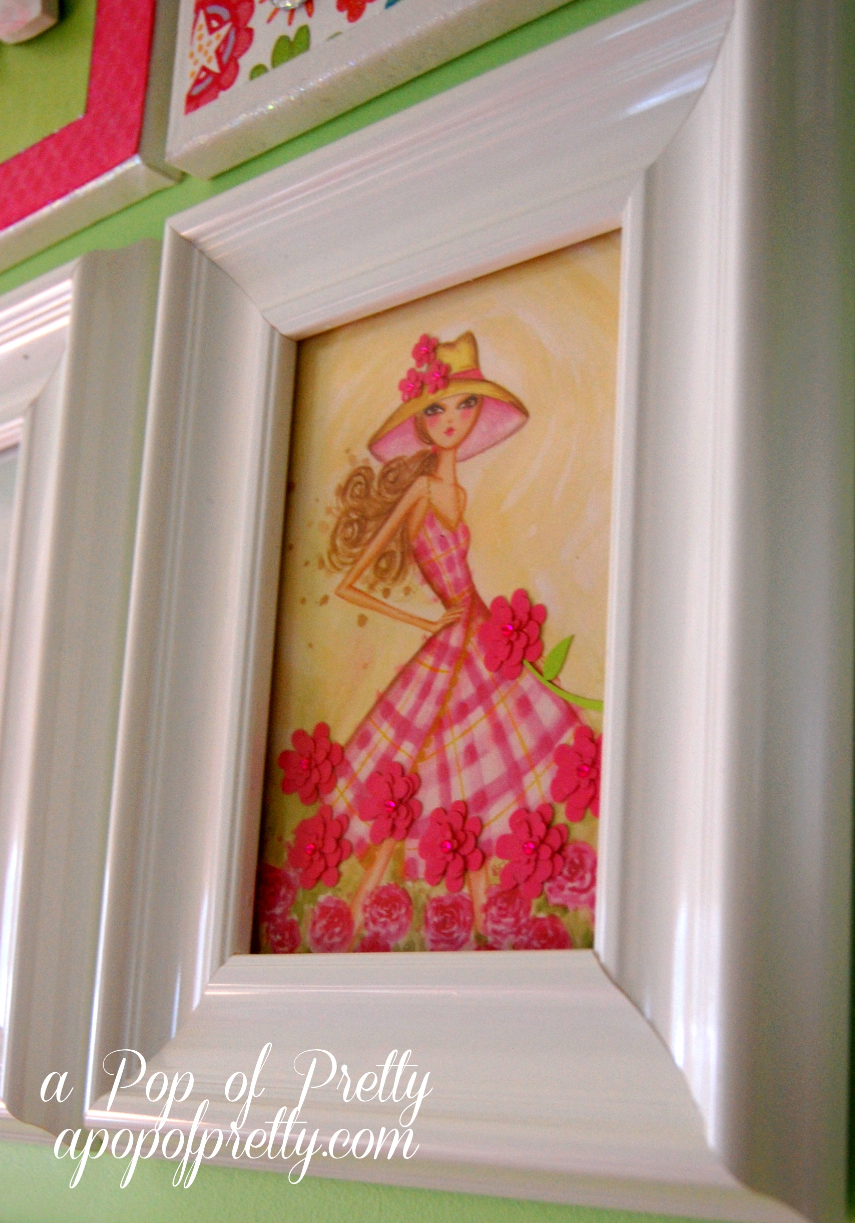 I fell in love with this series of bright, colorful Papyrus greeting cards while browsing for a birthday card back in the summer. I am in the middle of giving my 8-year old daughter’s bedroom a mini-makeover, and I knew these would be perfect for her wall. I liked that they were an age-appropriate way to indulge her growing fashionista tendencies ;-).