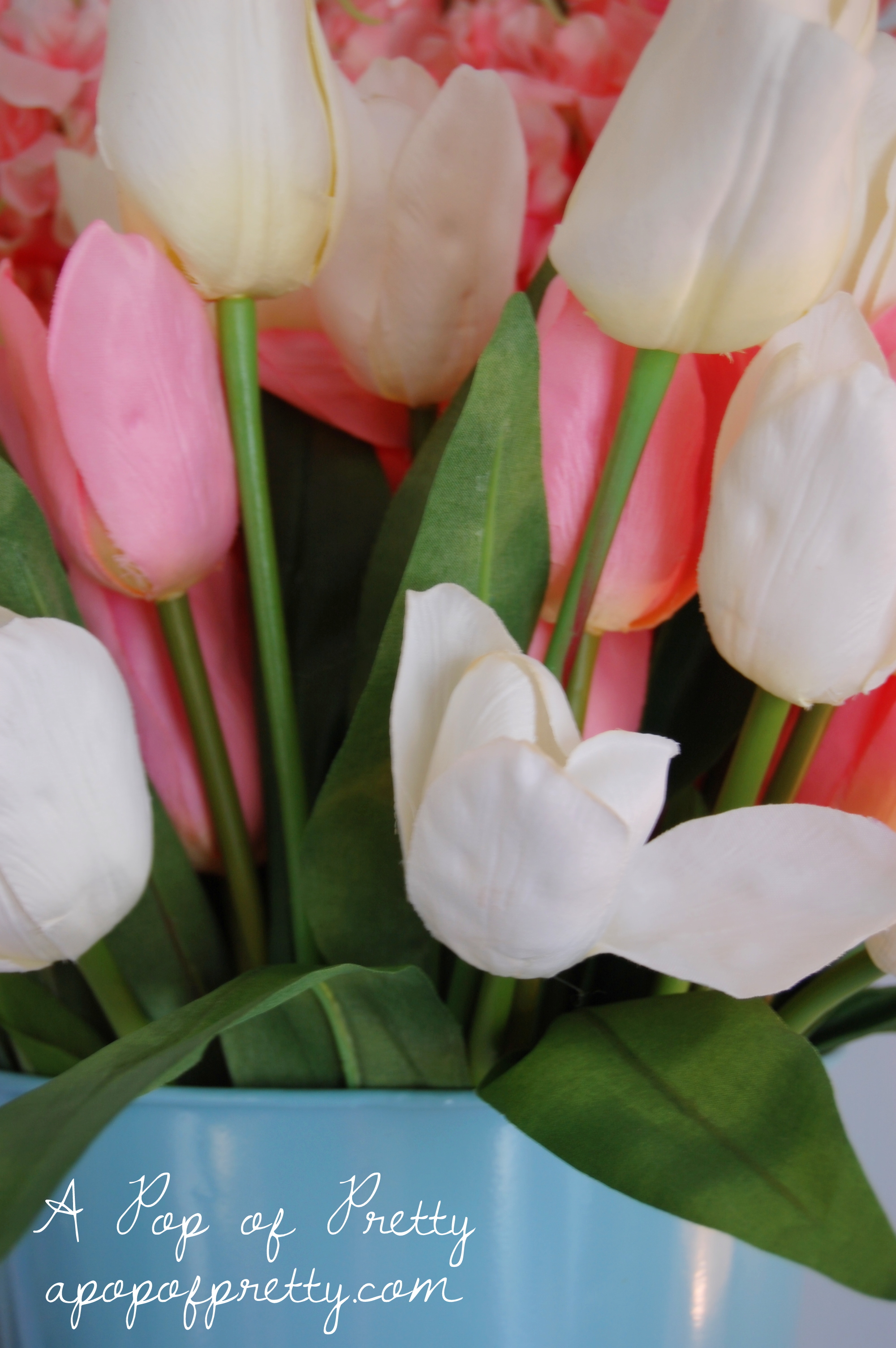My ‘thing’ about fake flowers is that I don’t like when they look, well….fake. You know the type, right? Like electric blue tulips that look they just came off the assembly line? (Psst…did you know that there is no such thing as a pure blue tulip? Tulips come in a wide variety of colors, except pure blue! Apparently, tulips with “blue” in the name have a faint violet hue. Source)