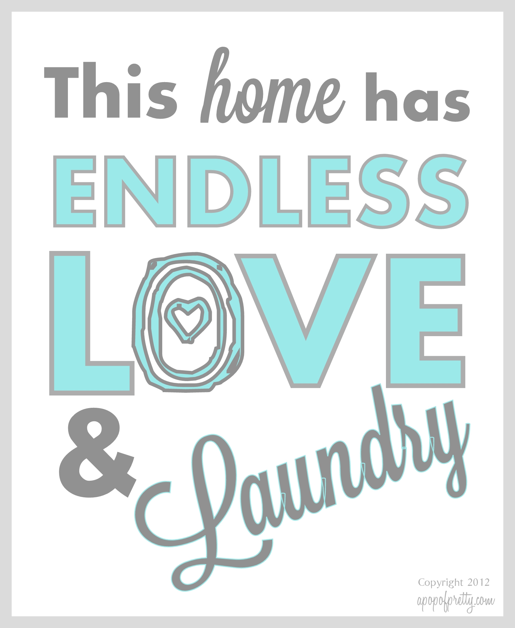 Love & Laundry Printable – Gray (Grey) and Aqua