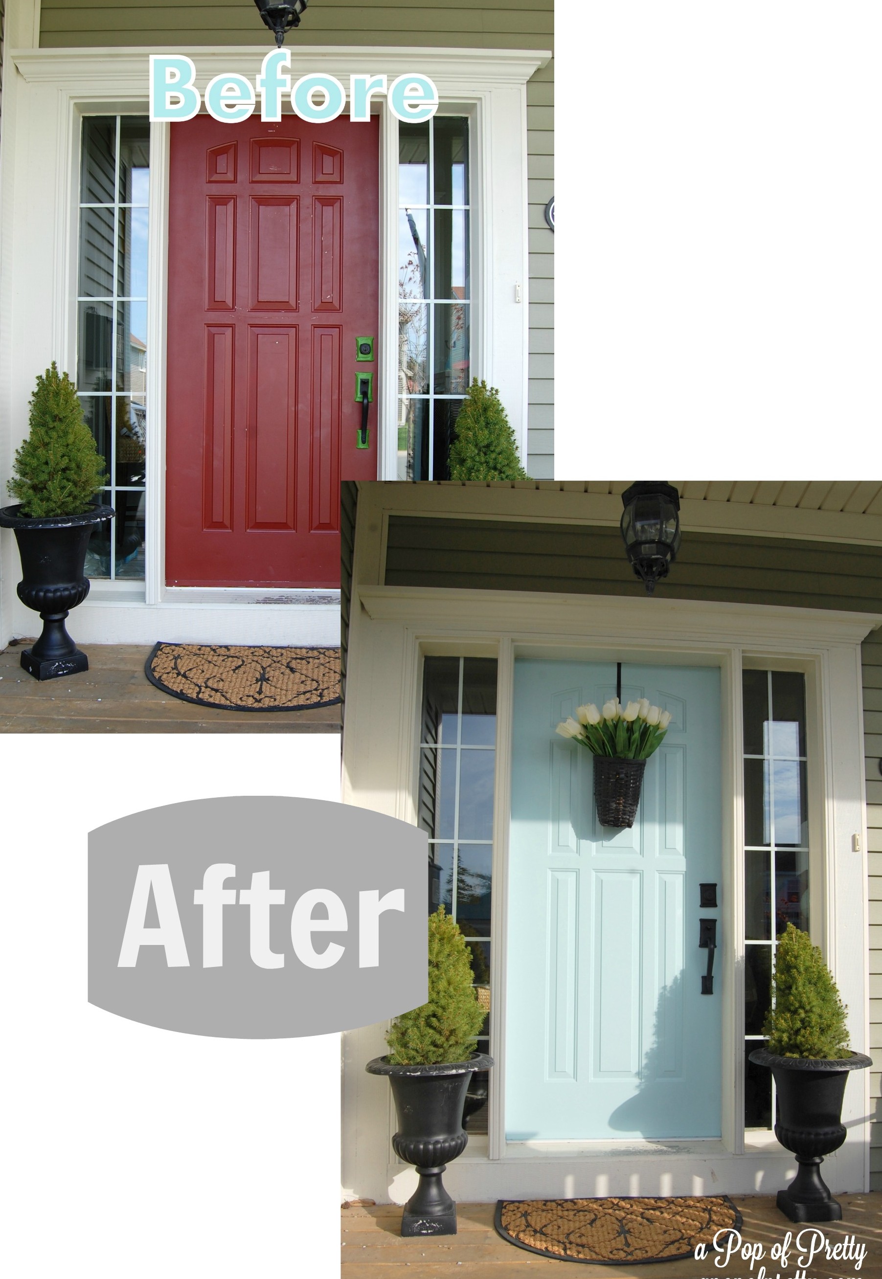 If I was a smart blogger, I could have entitled this post: My Front Door: The Big Reveal. But if you saw my post last week about how I painted my front door in an hour, then you’ve already seen how my blue front door turned out! Sheesh, I really have to get better at building the suspense around here, lol. Well, what I didn’t share in that post was a good ol’ Before & After. I also didn’t tell you how I felt about the change.