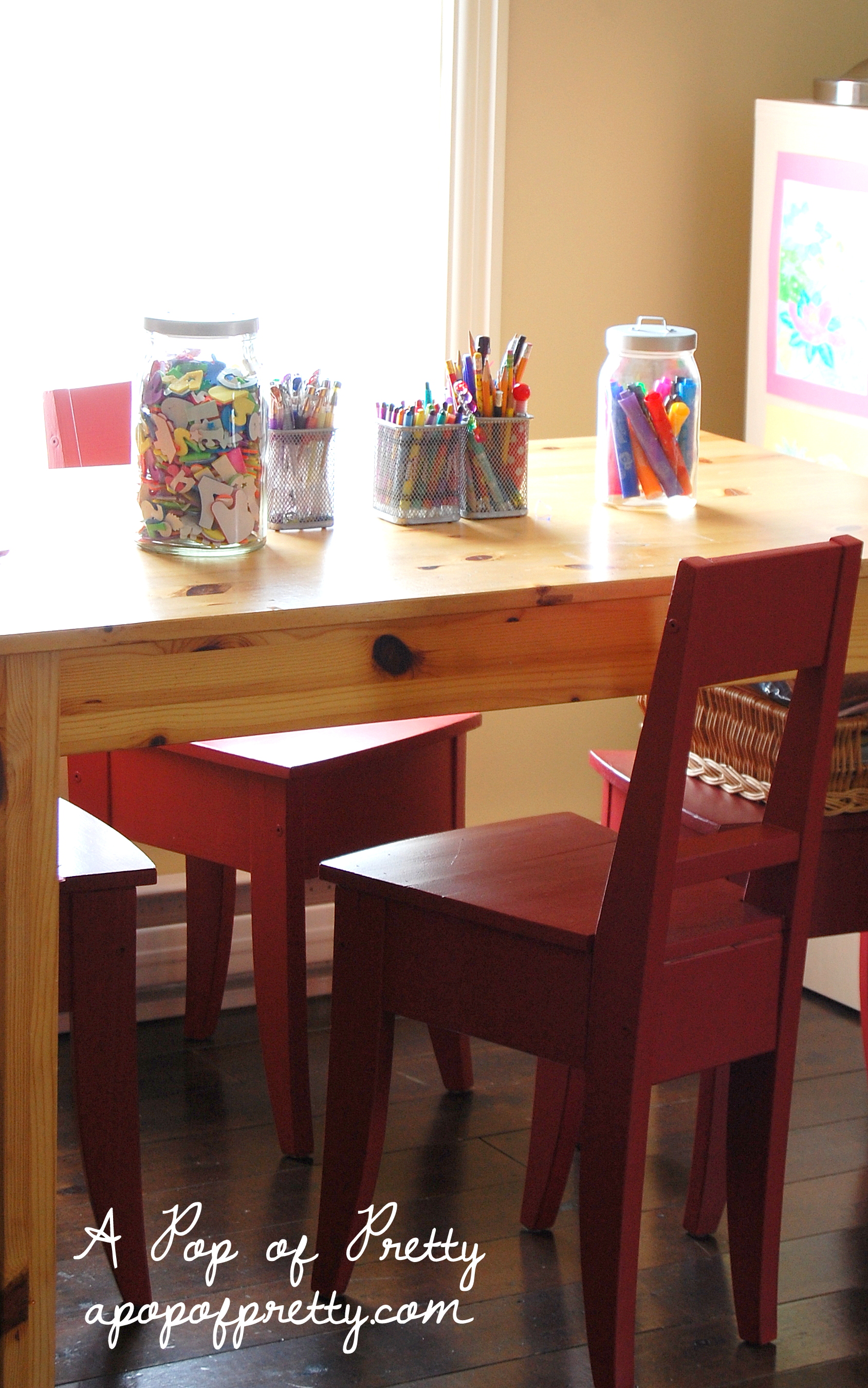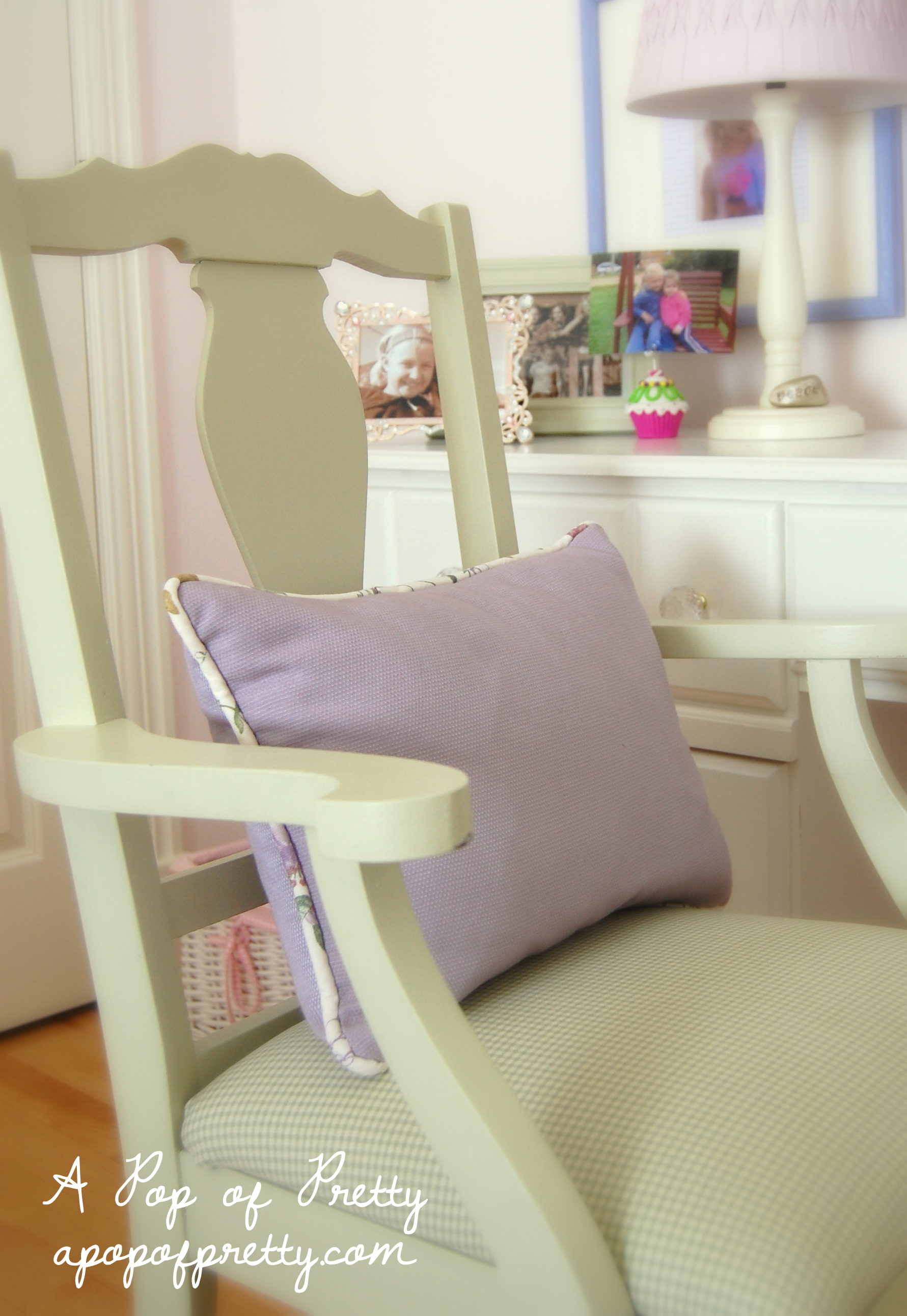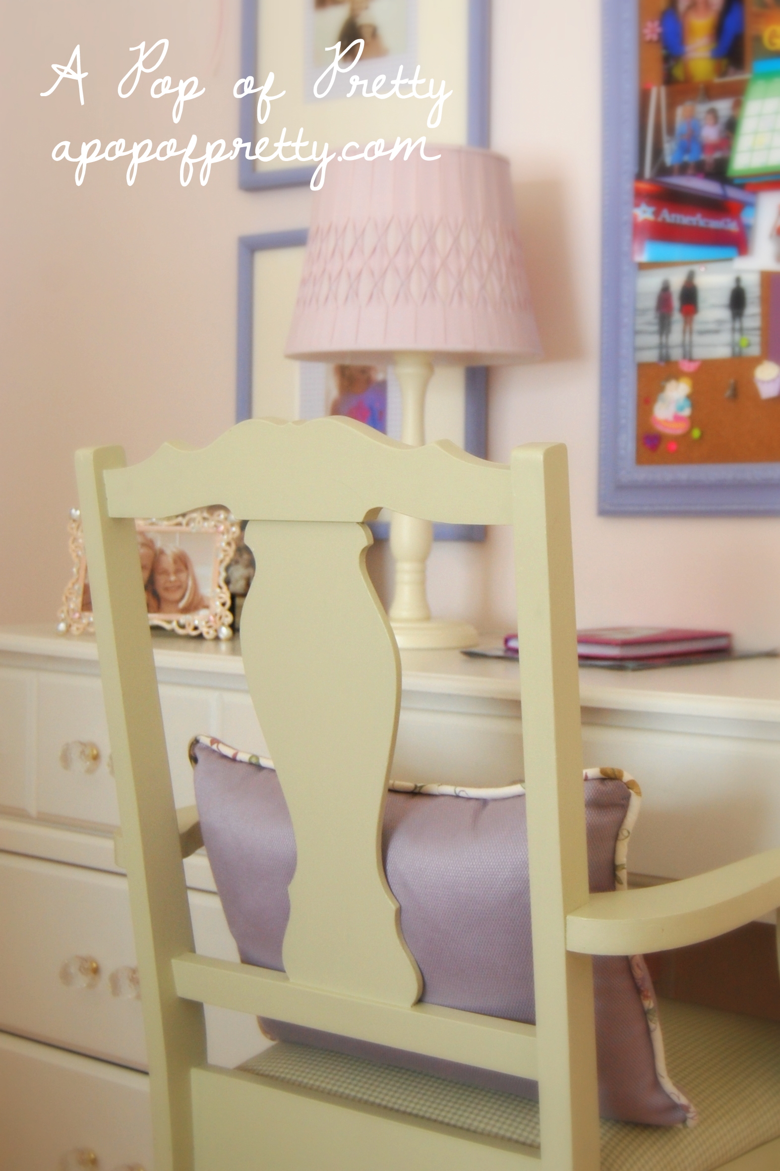 My Dad (who you met in this post) painted my sister’s childhood desk white and added the glass knobs. Now it’s a perfect nook for my niece to do her homework.