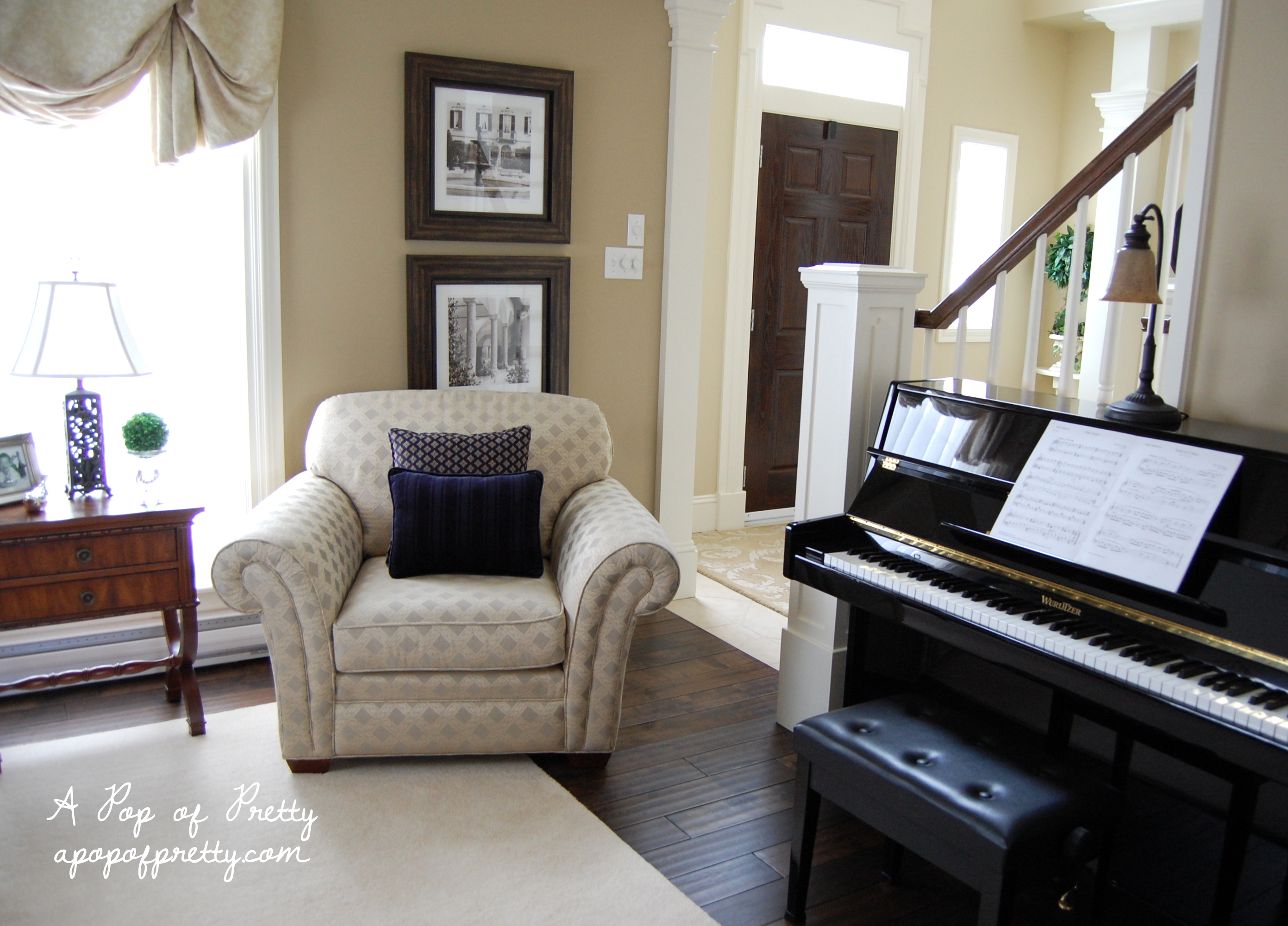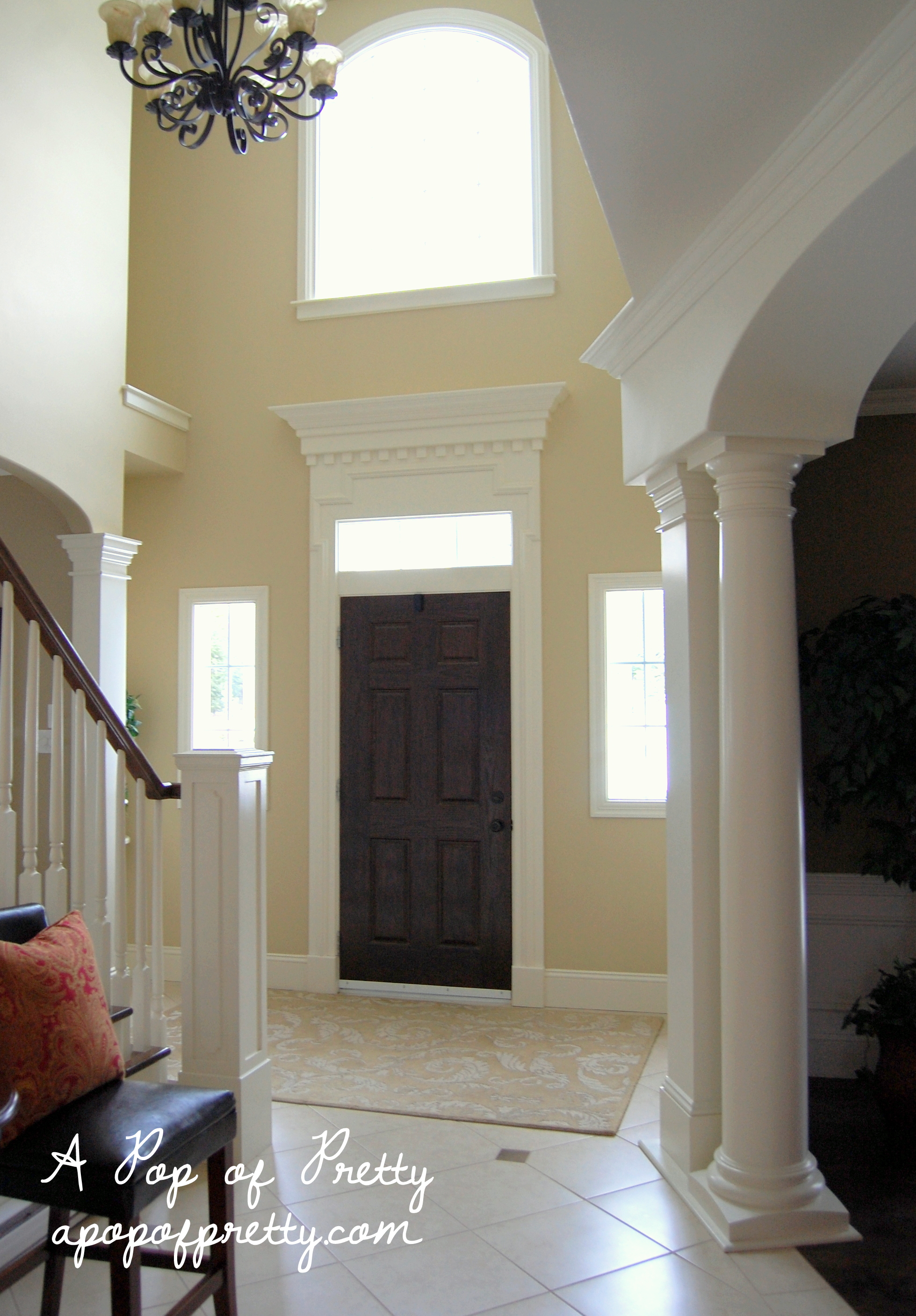 The style of my sister’s home sways a more formal and traditional than mine. The builder designed the home using Tuscan style architectural elements like arched doorways and large columns, which you’ll see throughout.