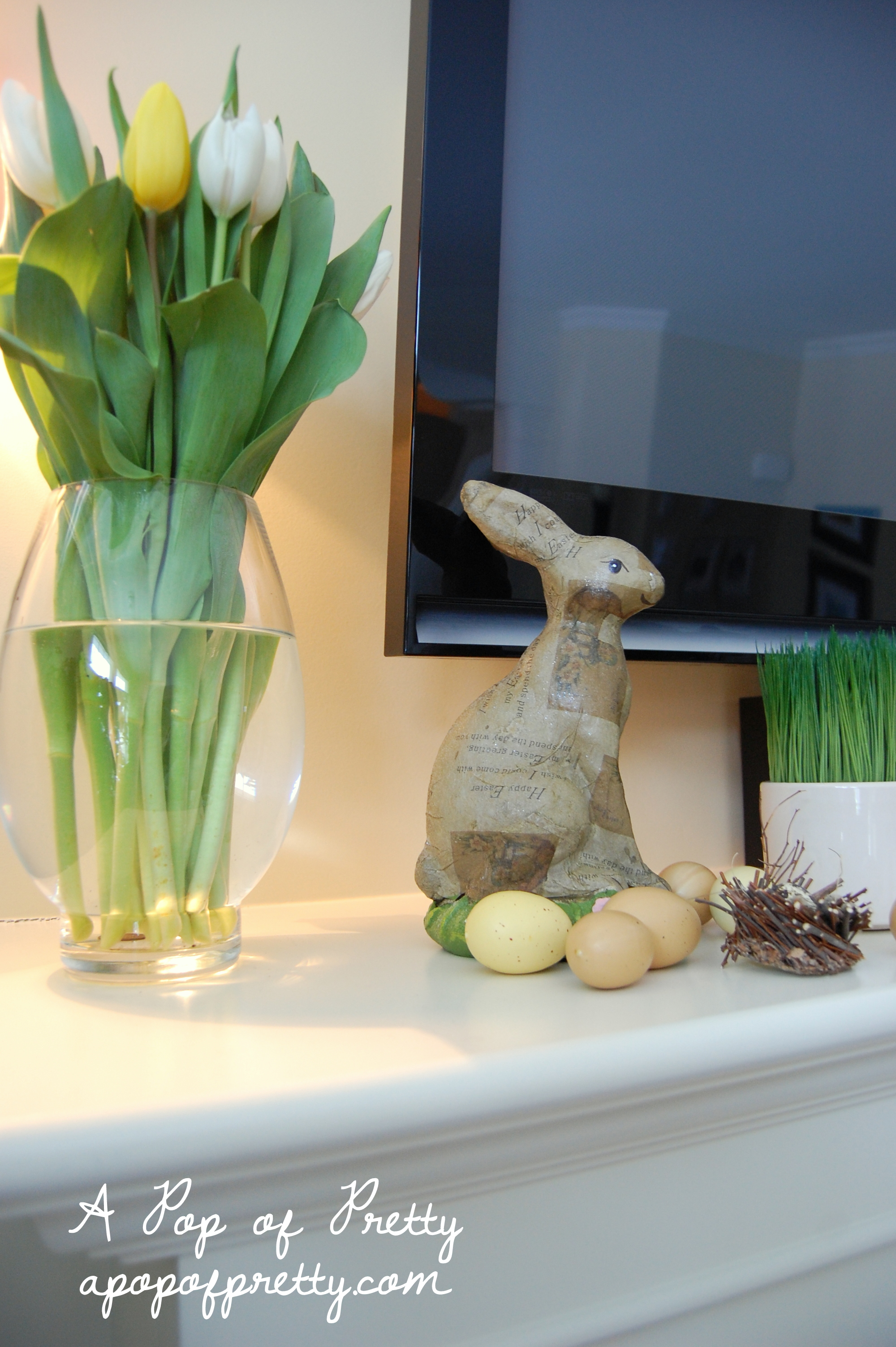 She decorated her mantel for Easter for the first time this year, which I like to think was partly due to my mantel addiction influence, lol. Again, note the fresh tulips…so pretty.