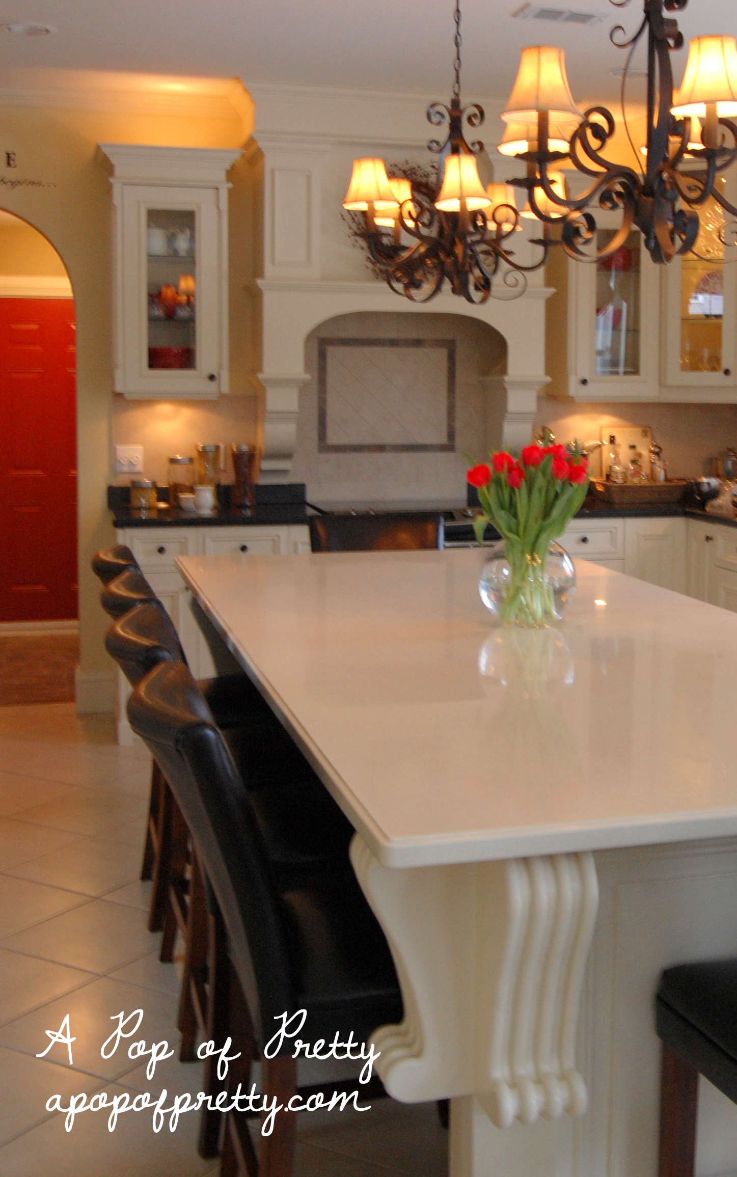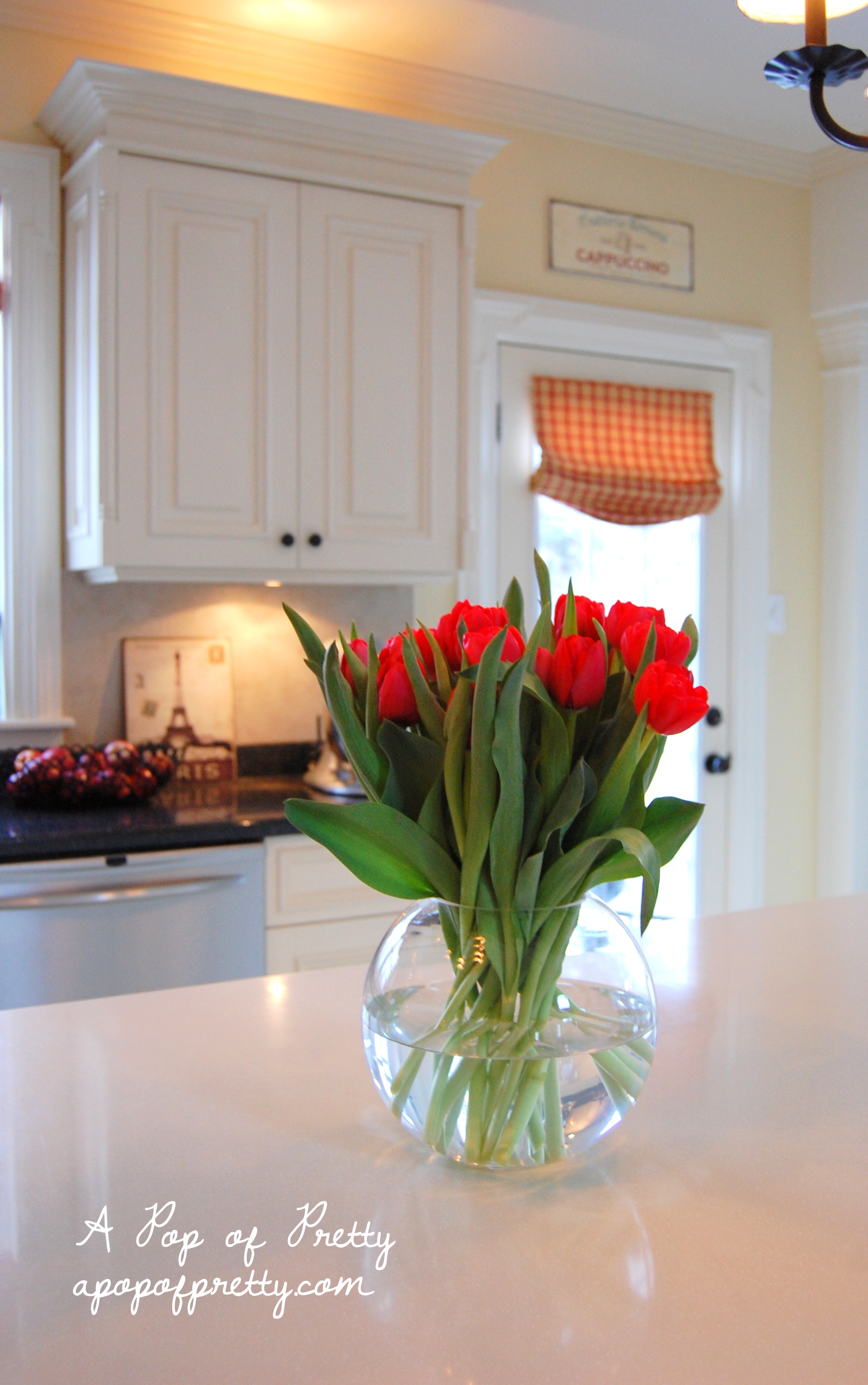 She’s always loved to decorate with fresh flowers, and tulips are her favorites. Doesn’t this look like it was staged for a photo shoot? But no, people, I swear to you, it was not! This really is the way her house looks on any given day. { Insert name-calling here.}