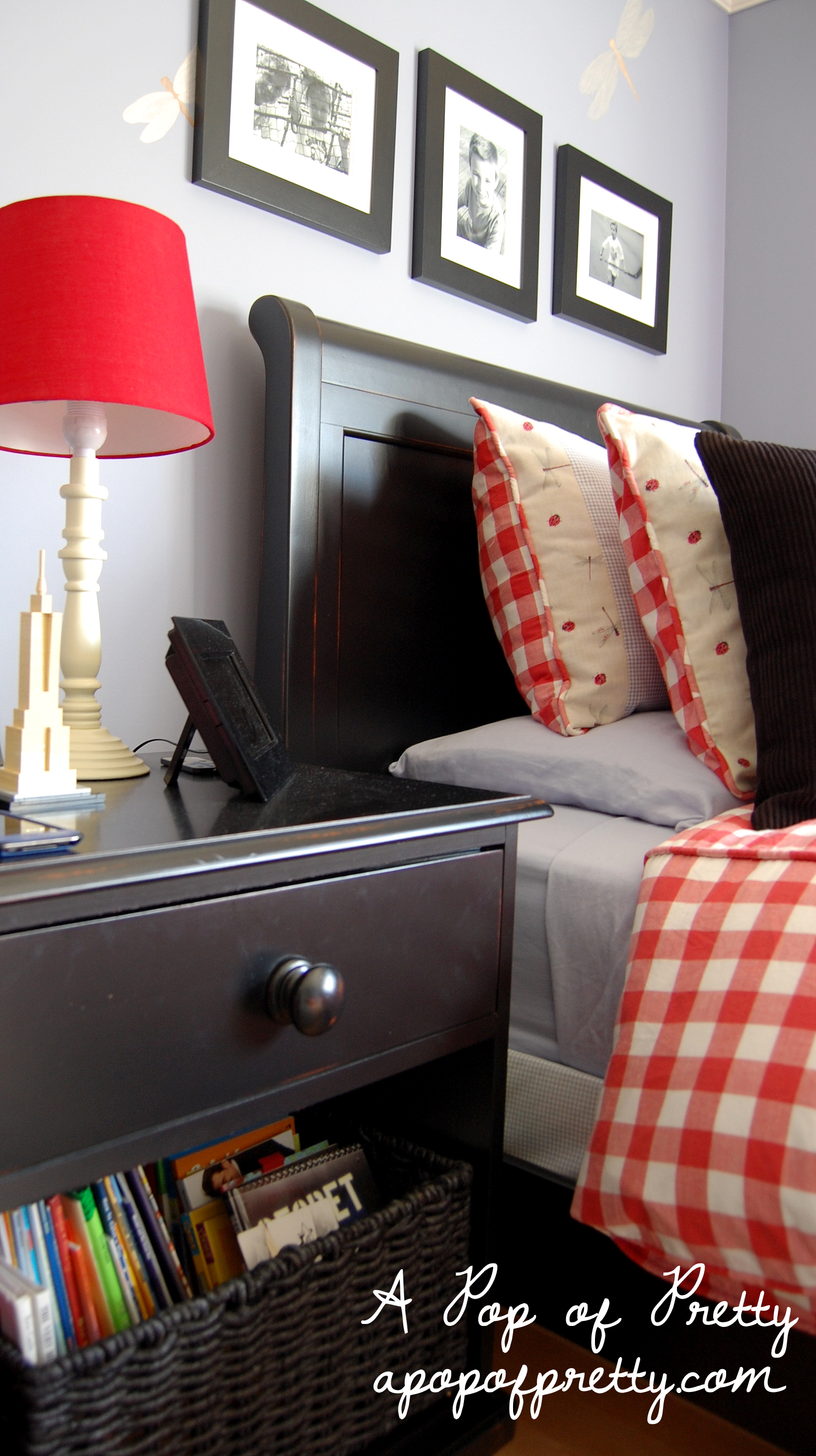 It is gradually becoming ‘all boy’, with hockey memorabilia and favorite lego creations, but still feels bright and cheery with pops of red against a blue backdrop…and hits of masculine black here and there.