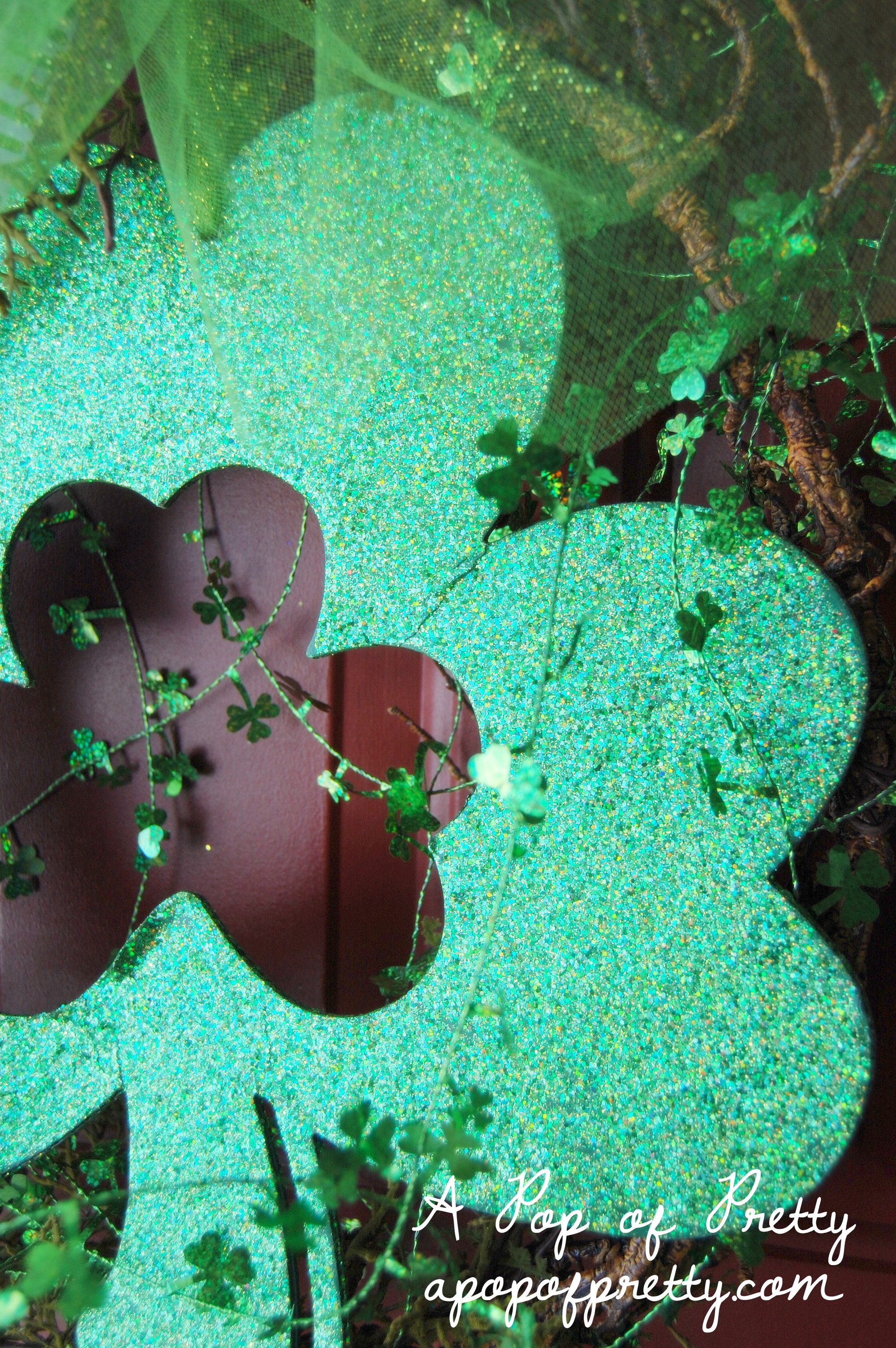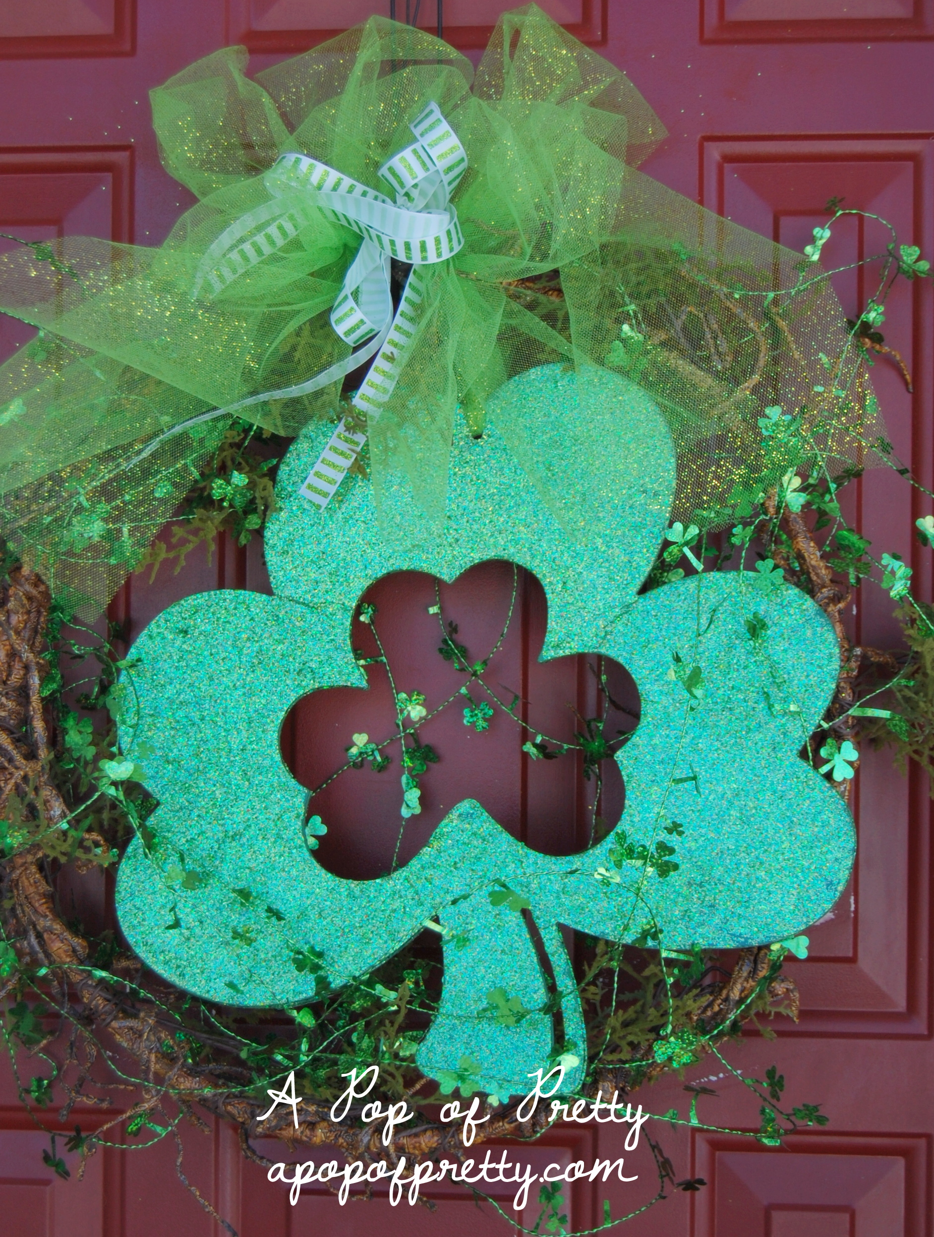 You know me, I relish the chance to make a new wreath – this time, for St Patricks Day! I rarely hang anything on my door between Valentine’s Day and Easter since our North Atlantic winter weather could easily chew it up and spit it out. But this year our winter has been unusually calm. (Knock wood). We had a few snowstorms in January and early February, but not much else since. Some of the kids on our cul de sac even had their bikes out the other day which is totally unheard of in February.