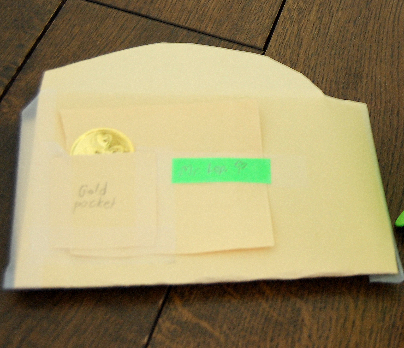 We’ve found a trail of green glitter on several occasions, and last year, he left a note! (See end of post.)