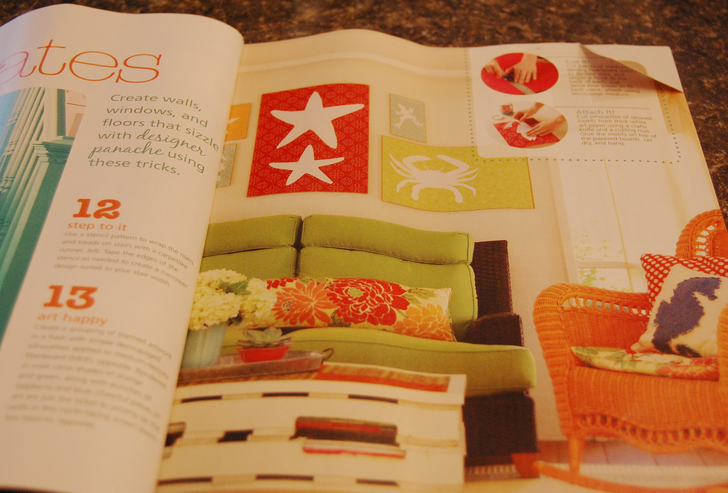 I can’t believe it’s taken me this long in my 31 25 DIY Wall Art Ideas Series to talk about Mod Podge! I was reminded of how great decoupage is for wall art projects when I was flipping through this magazine (Better Homes & Gardens Makeover Style) over the weekend and saw this fab living room wall art project. (Note: This is not a sponsored post.)