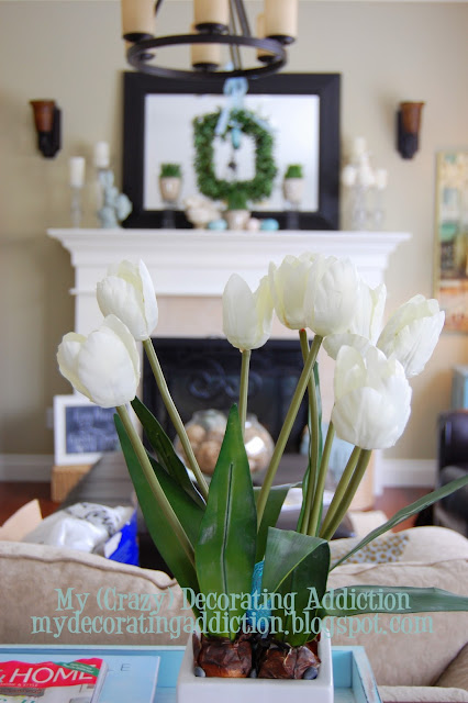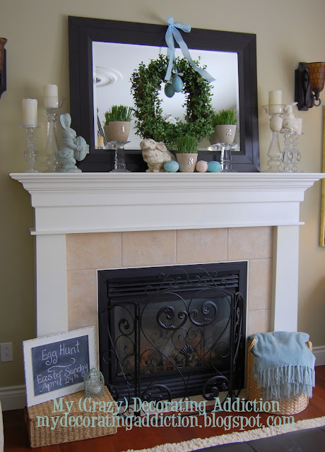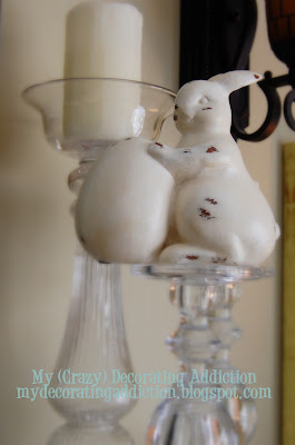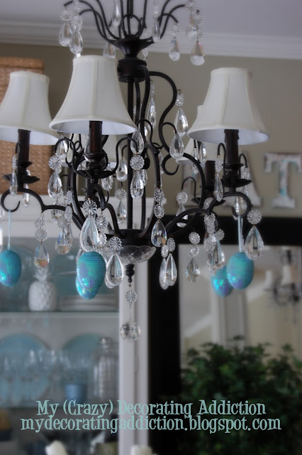 Very cute! Your mantle looks fresh and springy! I love the pretty eggs you've hung on your beautiful chandelier!