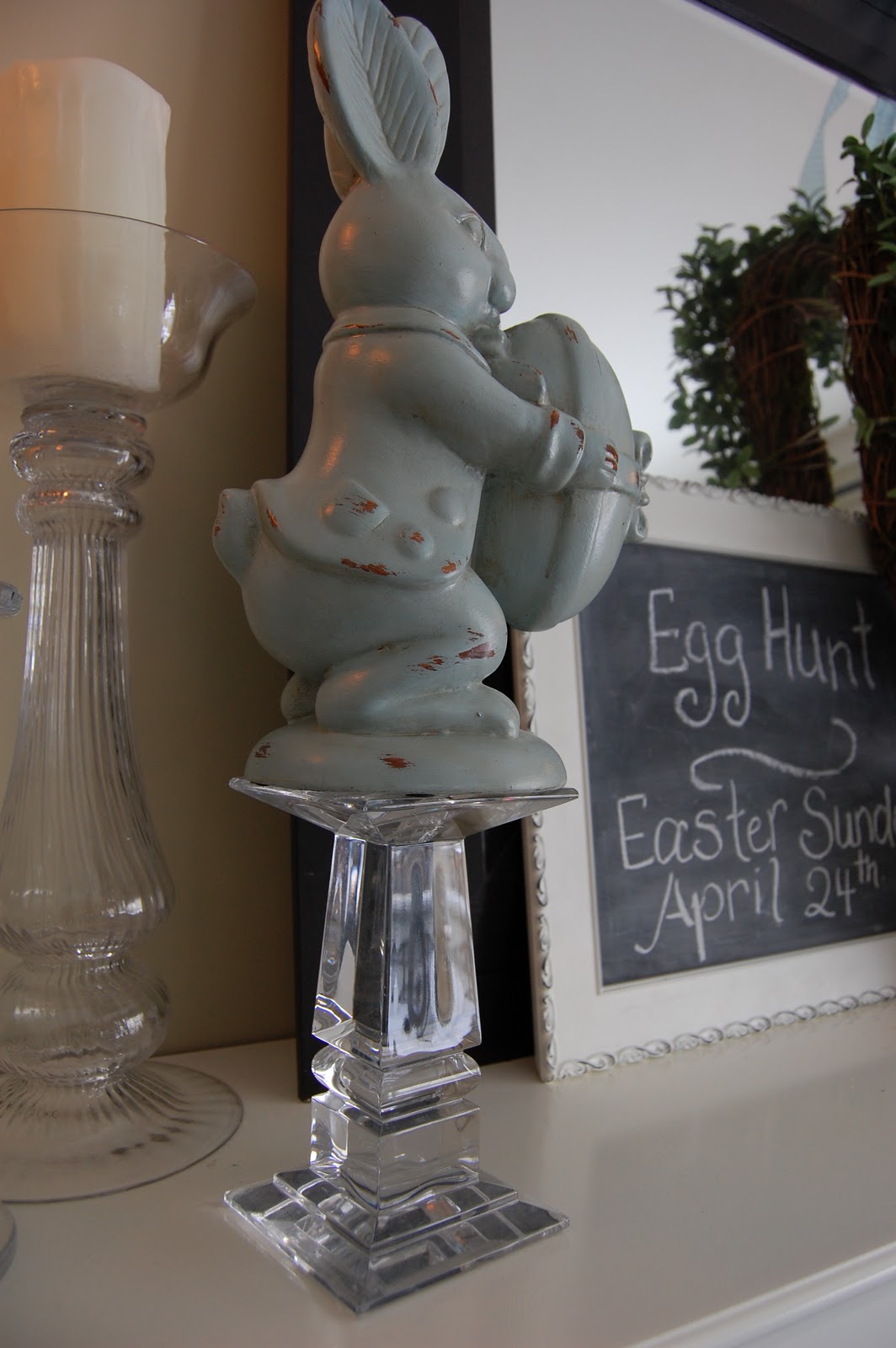 All of your Easter decor is beautiful. I love the little chalk board with the Easter egg hunt on it. Great job.