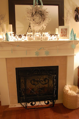 Love love love your mantel! Everything is so beautiful and even though I'm tired of the snow outside, I love how it looks inside! 😉