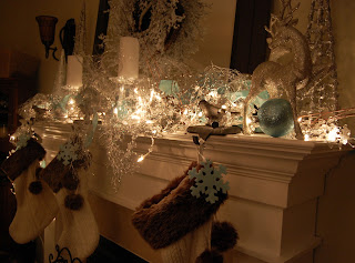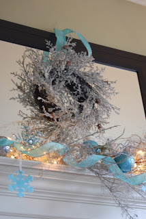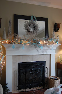 Oh so very pretty! I love the frosty blue you used on your mantel…it's gorgeous!