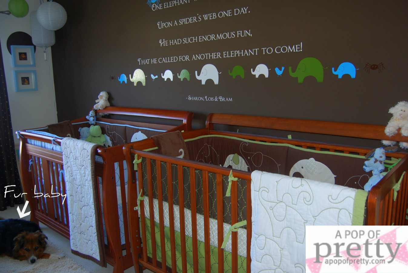 How adorable, 15 minutes old and ur babies are already holding hands! I just couldn’t resist commenting on how cute that is. And you have done a wonderful job with the nursery, I love all the little elephant details 🙂