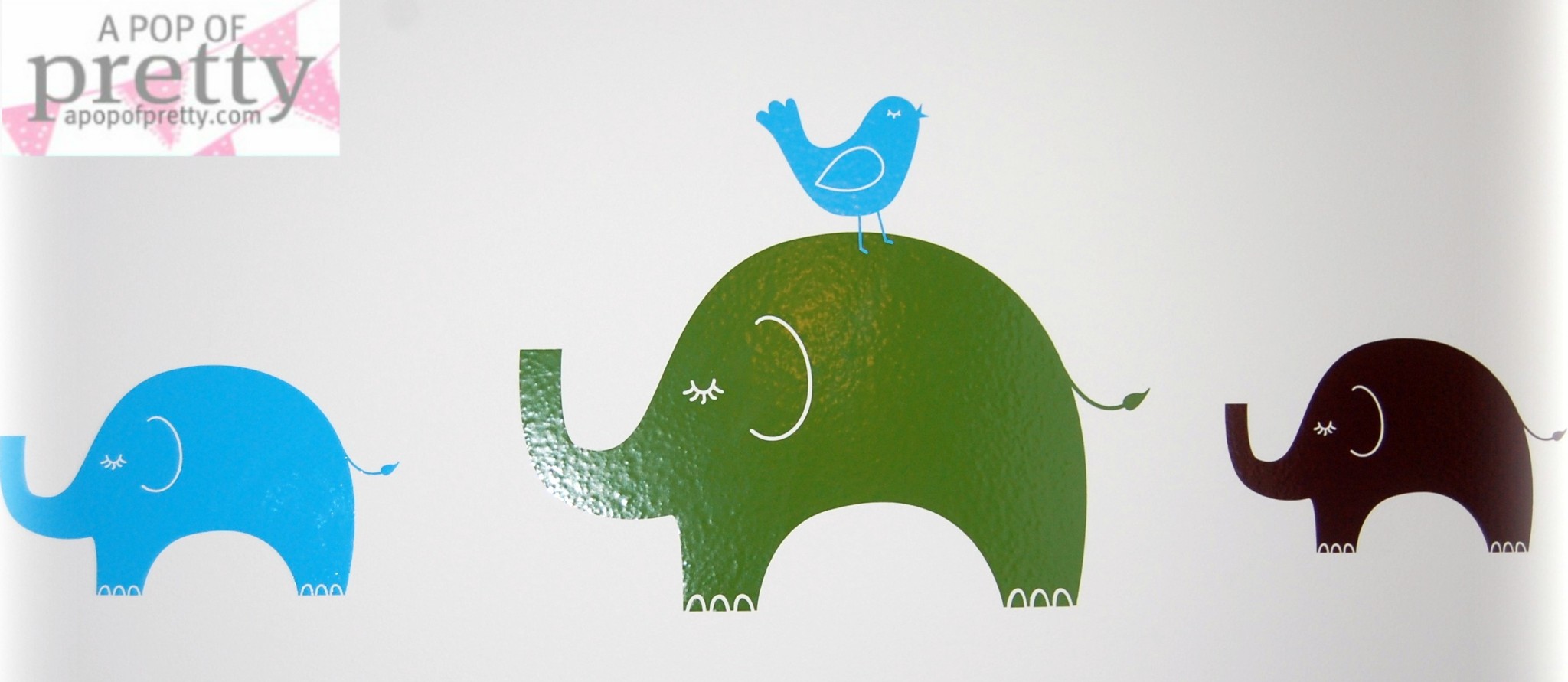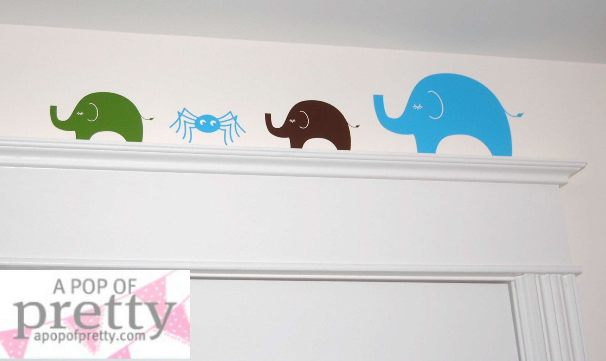 I found the adorable mod elephants, spiders and birds elsewhere online, and used them to create a little parade across the long feature wall.