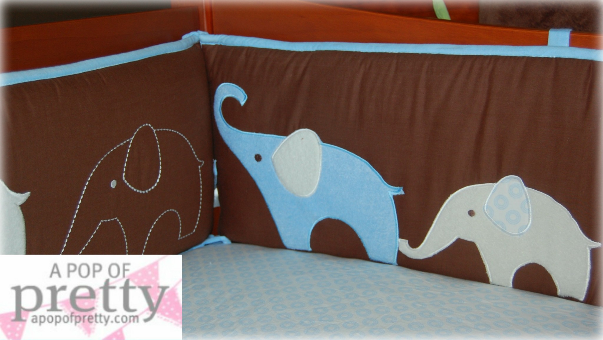 Our bedding was from Carters (“Elephant Stitch”). One crib was done in blue, and the other in green. (P.S. Don’t worry, the bumper pads came off once they started sleeping there, and they stayed off until they were 18 months. I love a pretty crib all decked out with pretty bumper pads, but it’s just better to be safe.)
