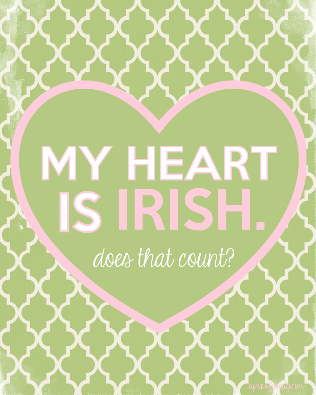To download them, just right click on the high res files below and them save them to your computer and print them as you wish (for best results, 8×10 and smaller). Then find a frame, pop it in, and shazam…instant St Patricks Day decor!