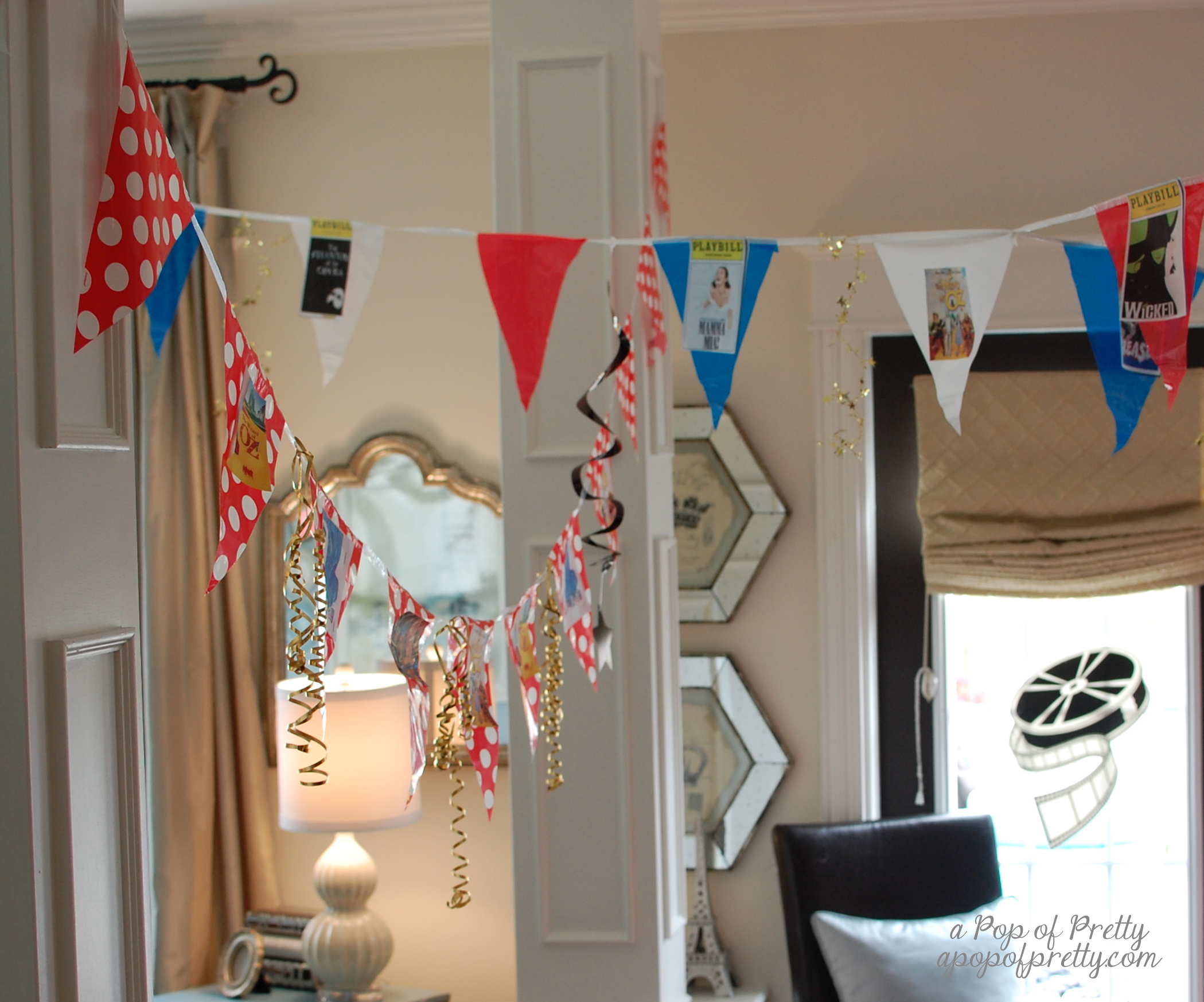 And, here’s another easy and affordable party decor idea: use your printer to print our the playbill covers of popular musicals. Then you can attach them to a pennant garlands or use them to decorate a table. You can see how I used them on our banners below. It was an easy and inexpensive way to get a lot of Broadway impact.