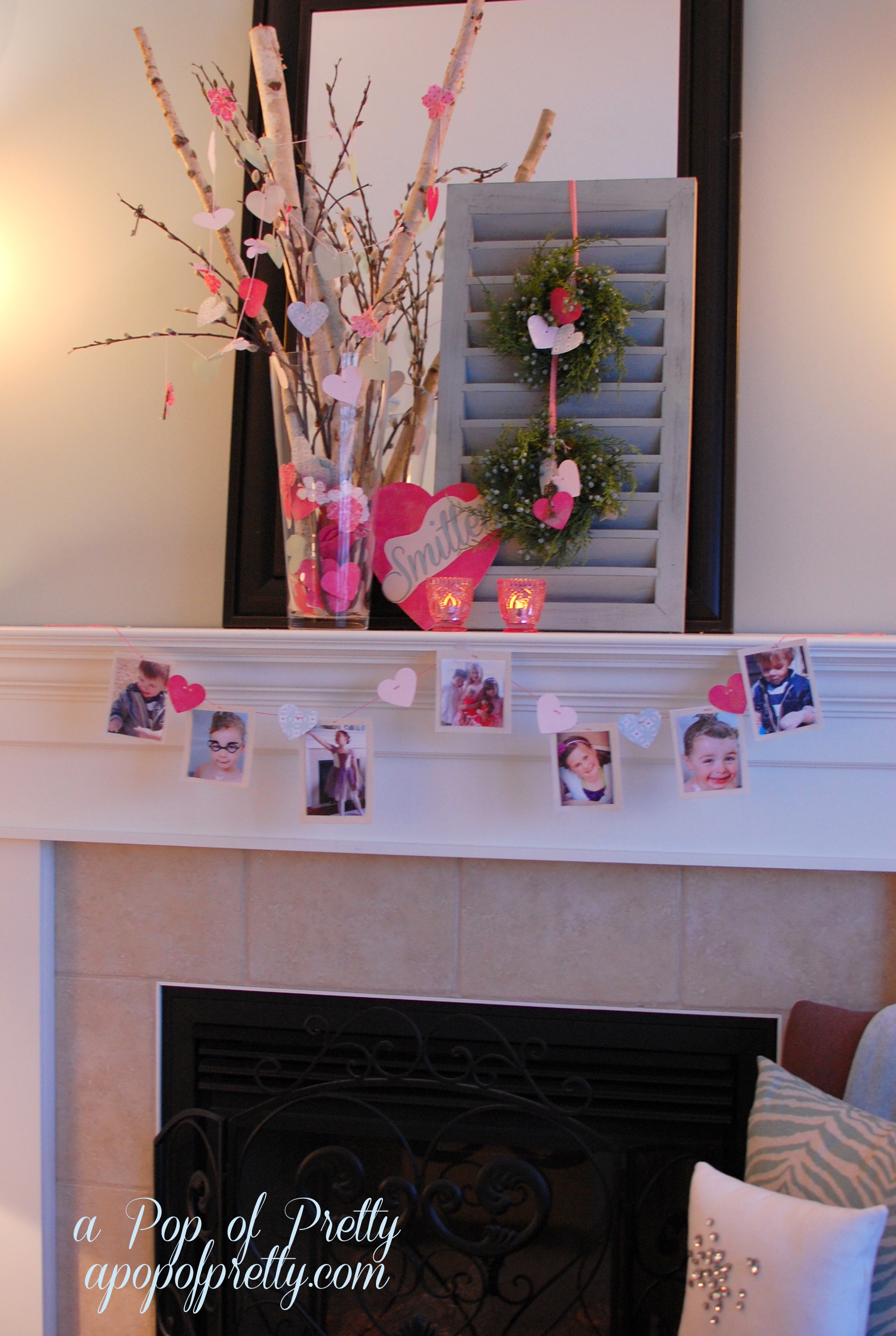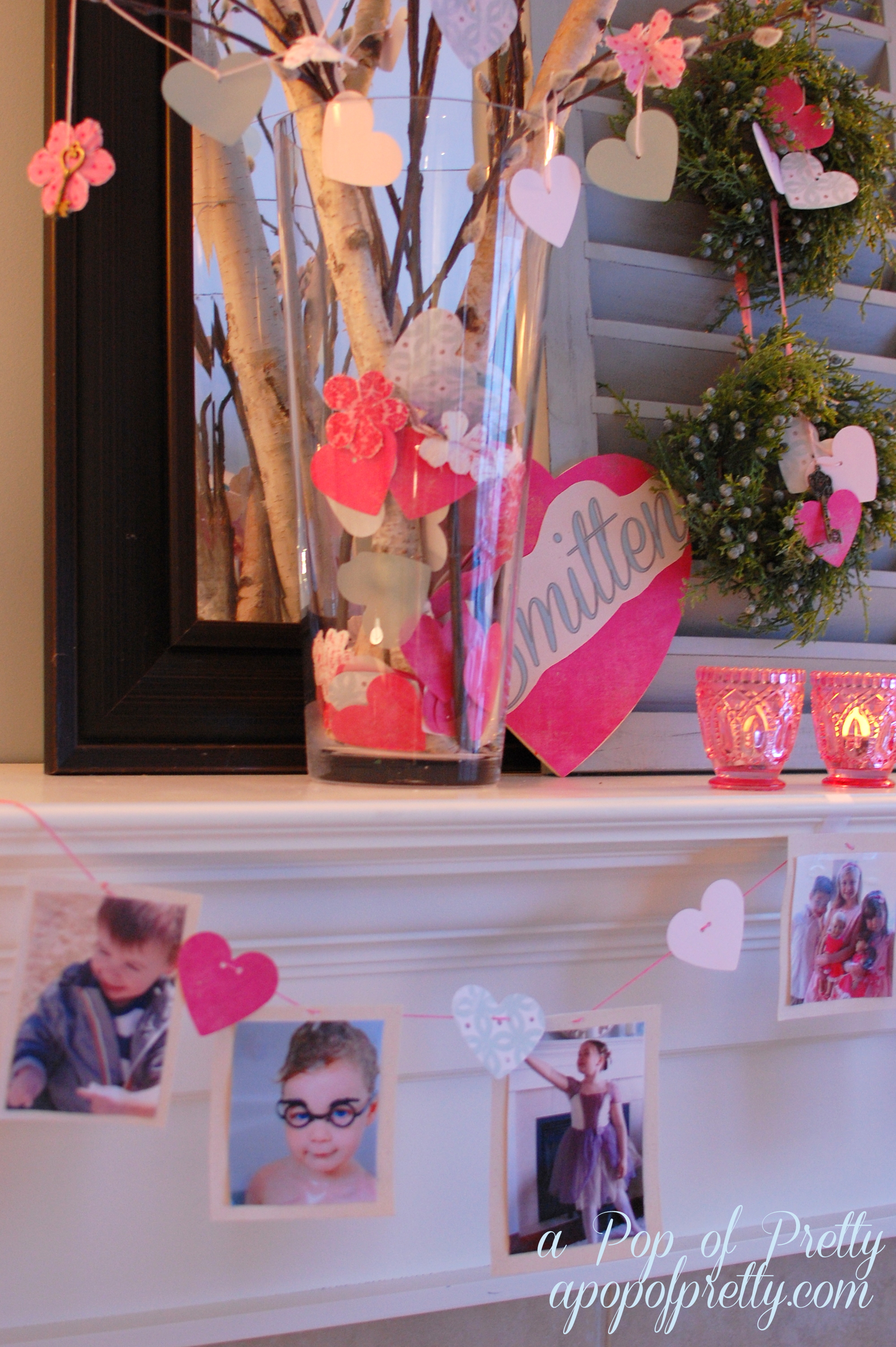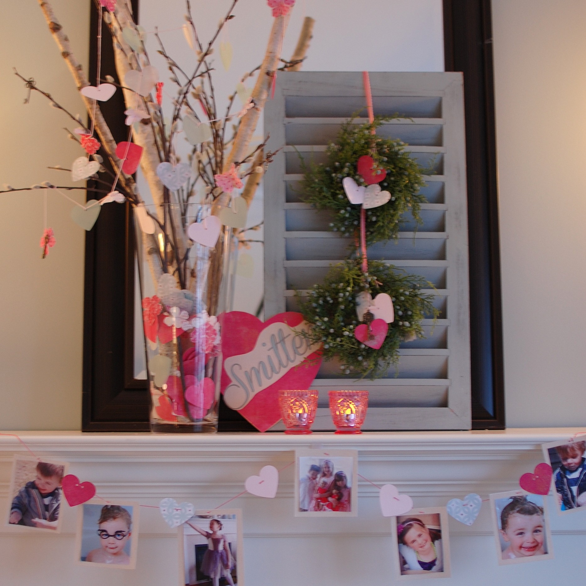 Valentine’s Day Decorating Ideas: “Smitten” Photo Mantel