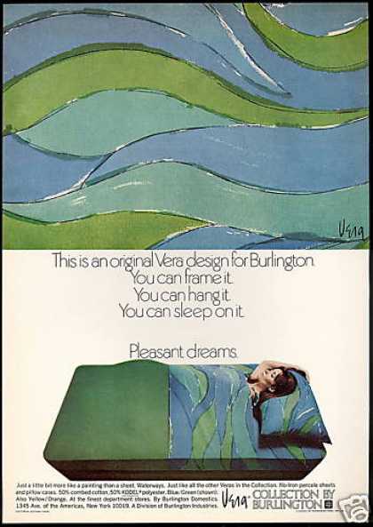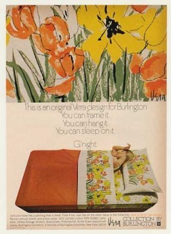 I love how the ad respects the genuine artistry of the product, both through its imagery and its copy: “This is an original Vera design for Burlington. You can frame it. You can hang it. You can sleep on it. Just a bit more like a painting than a sheet.”