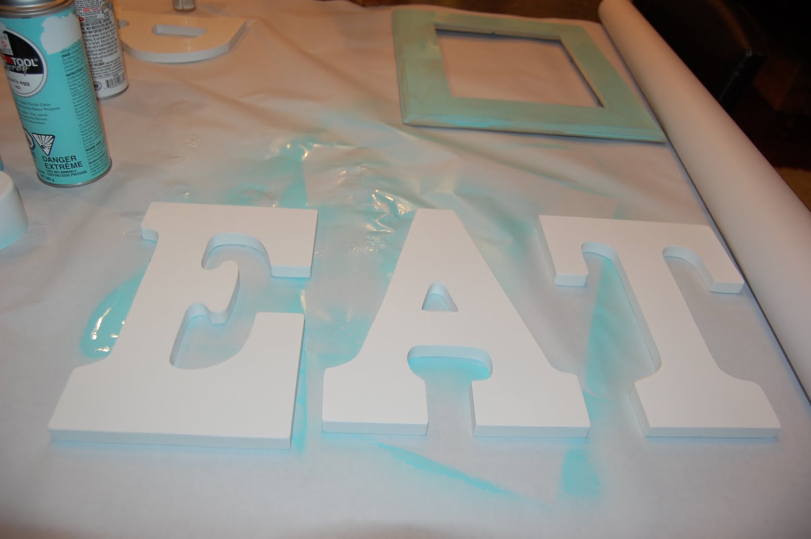 The final step was a top coat of clear spray varnish, and presto! I had my vintage EAT letters for a fraction of the cost. They turned out just as I had imagined!