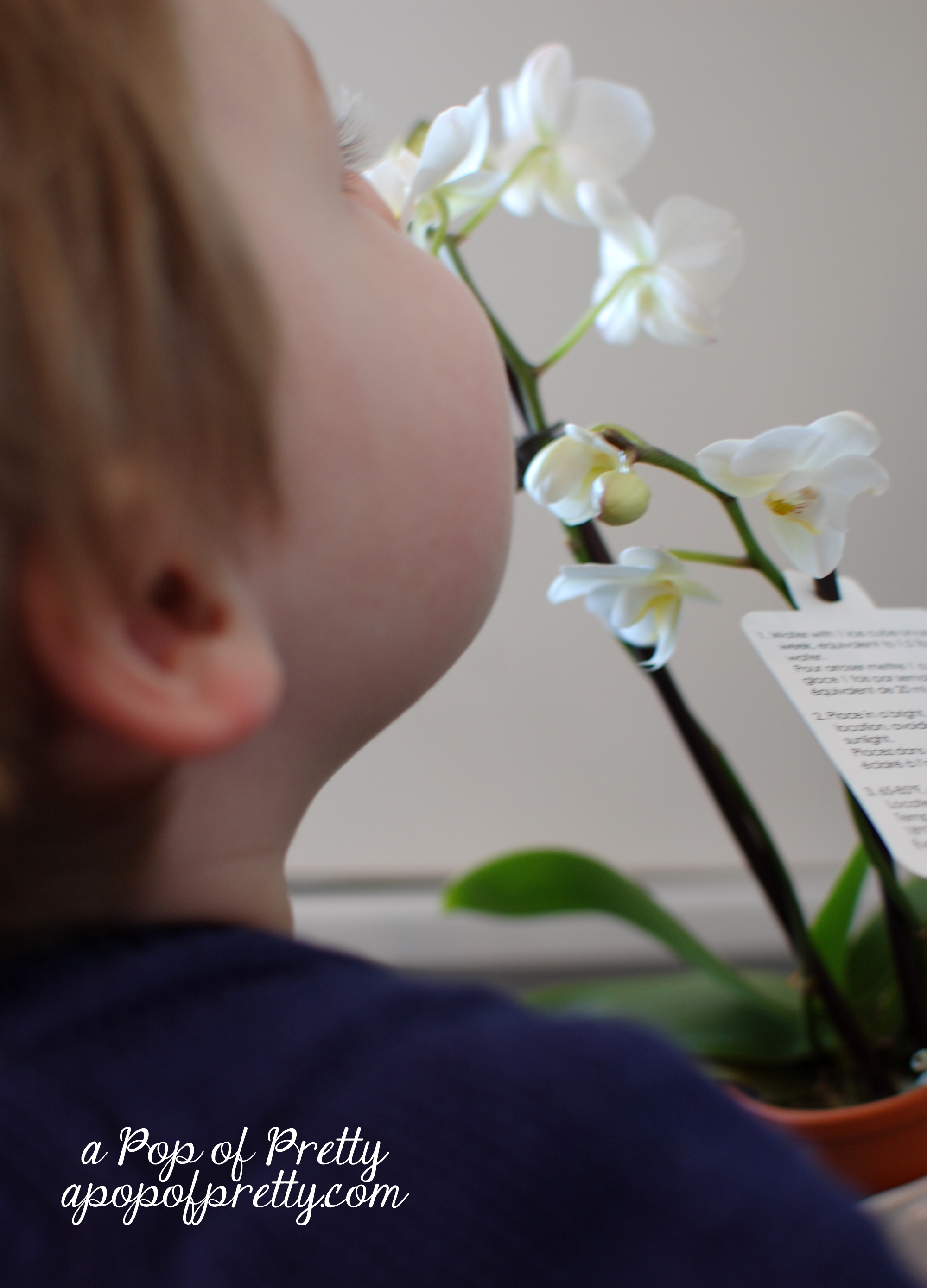 {By the way, this orchid is ‘watered’ with an ice cube. I’m not sure if that is normal for orchids, but I thought it was kinda cool!}