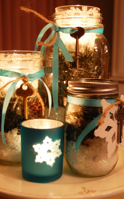 If you caught my last post, you might recall that one of my favorite ideas I’ve seen this Christmas has been simple little jar lanterns filled with frosty snow, twigs and other delights.
